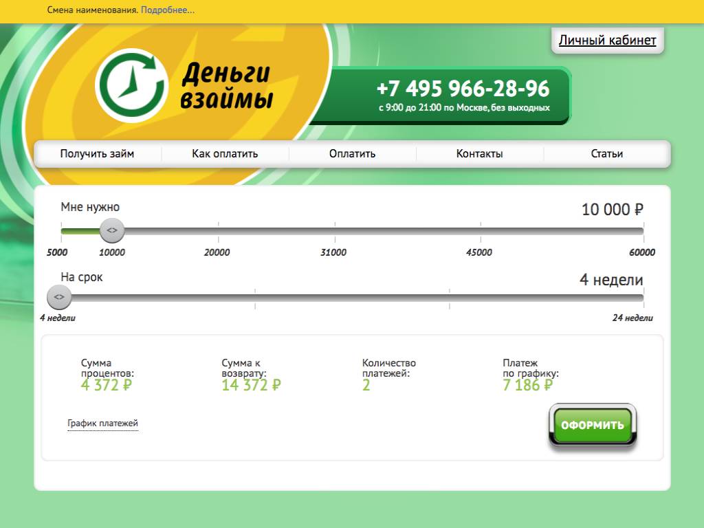 Сервис онлайн-займов и микрозаймов