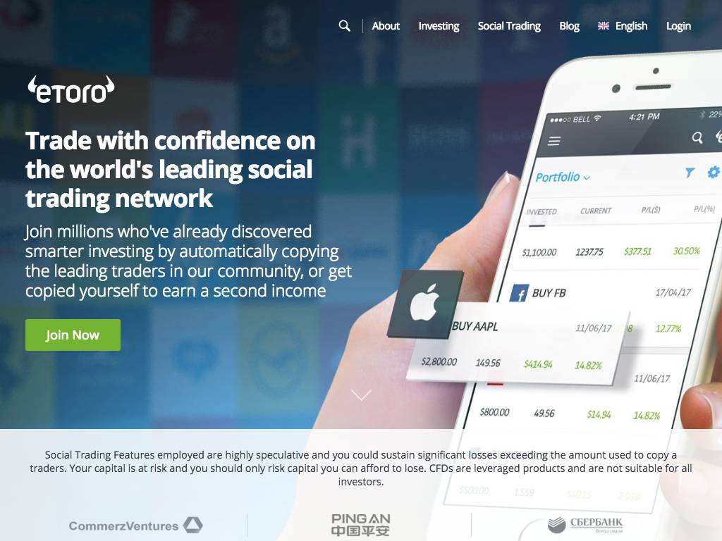 eToro — социальная сеть для финансовых онлайн-операций, запущенная в 2007 году. Она работает во многих странах мира. Ее мультиязычный интерфейс легко переключается на русский. Внести деньги на депозит можно с карты, через систему PayPal и другими способами. Вывод средств производится тем же путем, что и зачисление. Установка мобильного приложения позволяет торговать через данную сеть даже в путешествии. Сайт eToro предупреждает: при неграмотной торговле можно быстро потерять деньги.