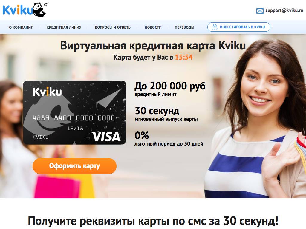 Kviku — компания, проводящая финансовые операции через интернет с 2013 года. С ее помощью можно сделать перевод, оформить стандартный кредит, виртуальную кредитную карту. Кэшбэк на последнюю при покупках в магазинах-партнерах может составлять от 1% до 90%. Товары приобретаются в рассрочку. Период кредитования — до года. Платежи по займам гасят с банковских карт, в том числе платежной системы МИР, в салонах «Евросеть» и через терминалы QIWI.