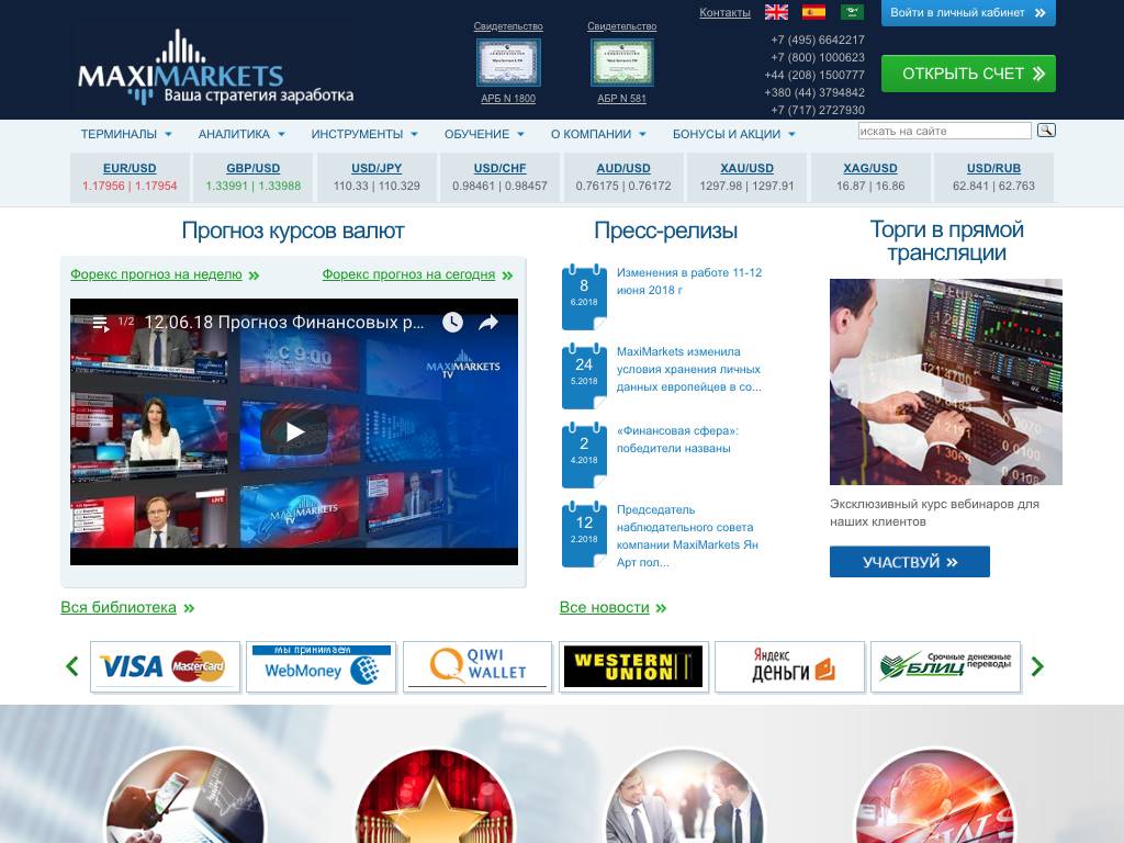 Maximarkets — компания, с помощью которой из любой точки мира можно получить доступ к сервисам для финансовых операций. Основная работа ведется на рынке Forex такими инструментами, как курсы валют и драгоценных металлов. Новичкам доступно бесплатное дистанционное обучение. Для перевода денег на депозит, а также вывода используются разные системы, в том числе WebMoney, QIWI. Со службой поддержки можно связаться по телефону, скайпу или через особую форму на сайте.