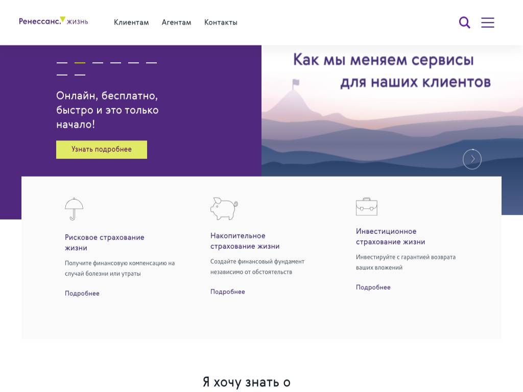 Ренессанс. Жизнь — страховая компания. Она предлагает клиентам различные варианты страхования жизни, в том числе рисковое, инвестиционное и накопительное. Оформить договор можно в ближайшем офисе. Представительства компании работают в более чем 20 городах России. Взносы оплачивают через сайт с банковской карты или с помощью приложения СБЕР. Функционирует многоканальный телефон для бесплатных звонков из любой точки РФ. Приглашаются к сотрудничеству агенты.
