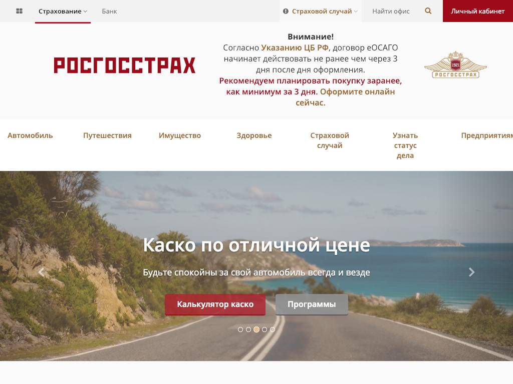 Росгосстрах — российская страховая компания. В РФ работают более полутора тысяч офисов и представительств. Некоторые виды полисов, например, по страхованию путешественников или квартиры, можно оформить через сайт. Во время онлайн-регистрации нужно указать номер мобильного телефона и паспортные данные. Возможна авторизация через Госуслуги. Оплата — банковской картой. Есть мобильное приложение. Работает портал под названием «Росгосстрах Музей», где собраны редкие материалы об истории страхового дела.