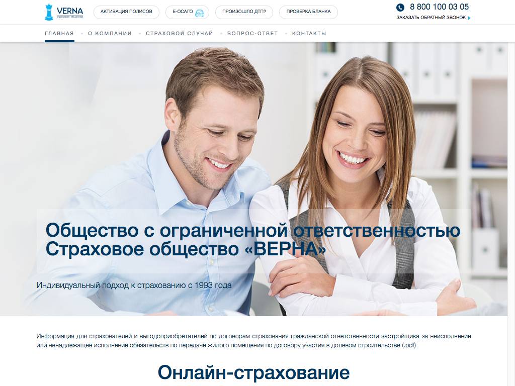 Verna — страховая организация с более чем 20-летним опытом работы. Ею разработаны программы для защиты здоровья, автомобилей, недвижимого имущества. Есть особые полисы для туристов, путешествующих по России или за рубежом. Оплатить услуги можно с сайта при помощи карты. Если вы, купив полис, заметили в данных ошибку, обращайтесь в службу поддержки. Она поможет уладить проблему. Для желающих убедиться в подлинности полиса на сайте есть специальная инструкция.